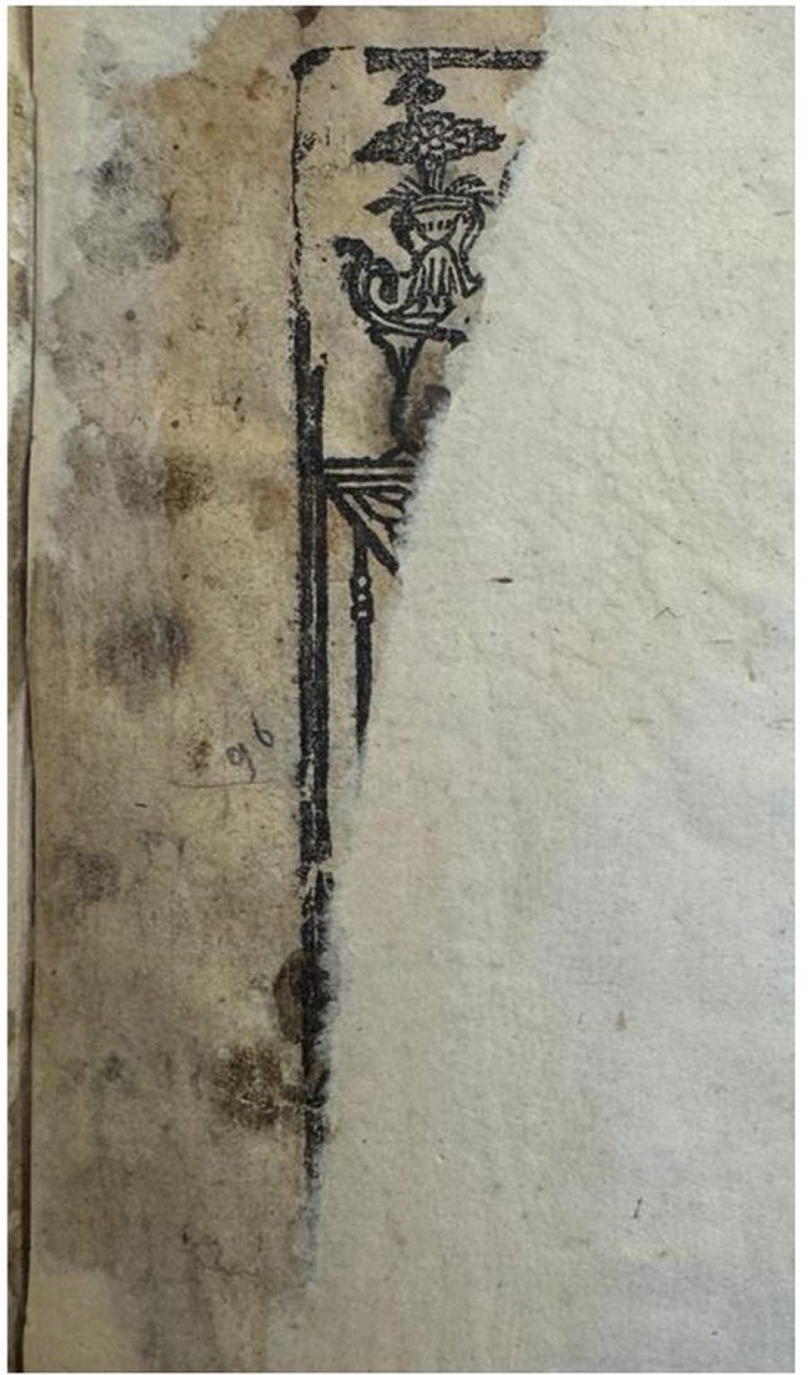 Në fletën 96 të kopjes vatikanase, menjëherë pas kolofonit, gjendet një fragment i dëmtuar i kornizës së ksilografisë së frontespicit të Mesharit.