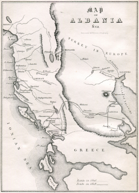 Harta e Shqipërisë (Lear, 1848): Harta e rrugës së Edward Lear, hartuar në vitin 1848, paraqet qartë rajonin e Himarës si pjesë të Shqipërisë (Albania). Kjo hartë vizaton kufijtë e Shqipërisë, duke e përfshirë Epirin Jugor (Janinën, Pargën etj.) brenda saj.