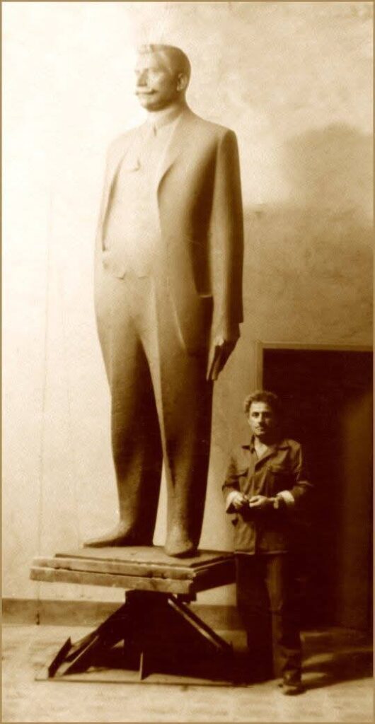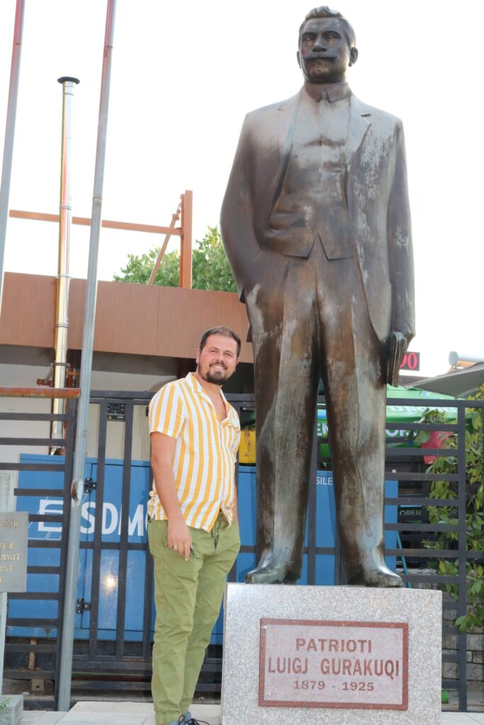 Skulptori shkodran, Ferid Kola pranë veprës së tij, në ambientet e fonderi, para se Luigj Gurakuqi si vepër t’i përkiste Shkodrës, t’i përkiste memories historike të këtij kolosi të djalërisë, intelektualit dhe personalitetit të shquar, përpiluesit dhe nëshkruesit të dokumentit themeltar të Shtetit Shqiptar