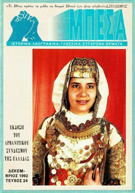 “ΜΠΕΣΑ. ΙΣΤΟΡΙΚΑ-ΛΑΟΓΡΑΦΙΚΑ-ΓΛΩΣΣΙΚΑ-ΣΥΓΧΡΟΝΑ ΘΕΜΑΤΑ.” Εκδοση του Αρβανιτικού Συνδέσμου της Ελλάδας, Δεκέμβριος 1992, Τεύχος 24.