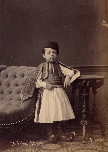 Antropologjia dhe Veshjet: Imazhi i një “Enfant Albanais” (Fëmijë Shqiptar) i fotogravuar nga P. Sébah, një fotograf i njohur i Lindjes së Mesme dhe Ballkanit, shërben si një dëshmi vizuale e njohjes së elementit shqiptar dhe stilit të veshjes së tyre në atë periudhë, duke e lidhur këtë identitet me rajonin gjeografik më të gjerë të përfshirë në diskutim.