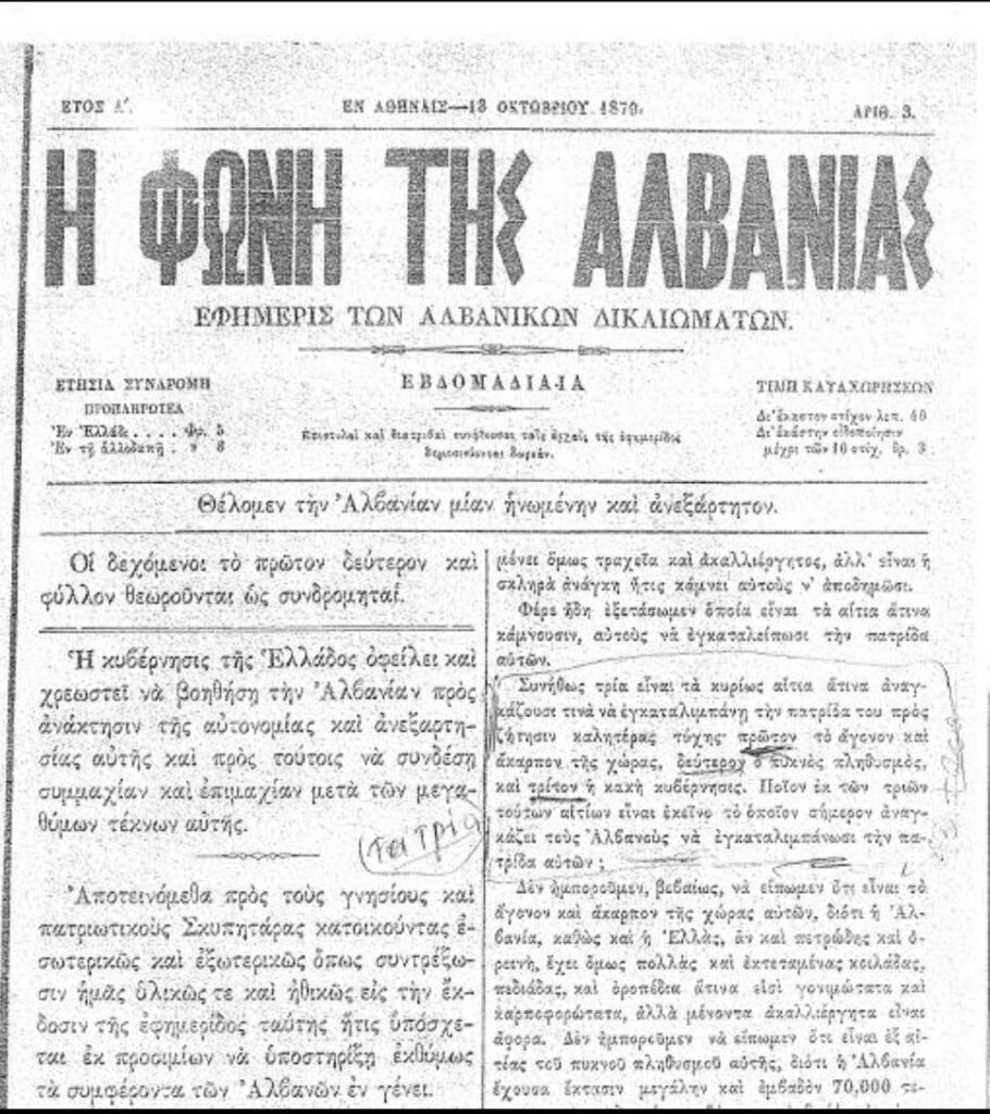 3 Nëntorë 1879 – Kur Athina fliste shqip dhe kërkohej bashkimi i trojeve shqiptare