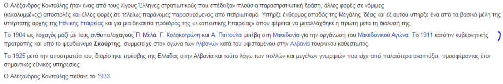 Ështe me rëndësi dokumentare dhe historike të marrim në konsideratë dhe shqyrtim figurën komplekse të Gjeneralit Alexandros Kontoulis, arbëror/arvanitas, – në gjuhë, zakone, tradita doke e veshje, – (i njohur me pseudonimin Kapetan Skourtis shqip.Shkurti). Duke u bazuar në arkivat historike, artikulli argumenton se origjina e tij shqiptare nuk ishte thjesht një detaj biografik, por një mjet gjeostrategjik që u përdor për të lidhur ura bashkëpunimi midis Greqisë dhe krerëve shqiptarë, veçanërisht Ismail Qemalit. Këtu zbulojmë veprimtarinë e tij nga Lufta e Maqedonisë (1904) deri në misionet sekrete në Shkodër (1911) dhe emërimin e tij diplomatik në Tiranë (1925).