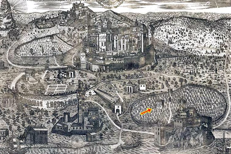 Gravurat e vjetra të manastirit e dëshmojnë qartë pozicionin e saj dominues në peizazh, duke e veçuar atë si një ndërtesë me rëndësi të veçantë jashtë mureve rrethuese kryesore.