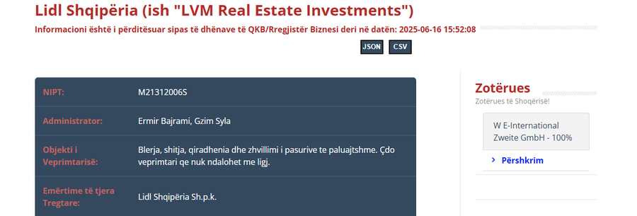 Duke i qëndruar pyetjes së Ahmetajt rezulton se “Lidl Shqipëria” SH.P.K. ka qenë duke operuar më herët nën emrin “LVM Real Estate Investments”, me administrator Ermir Bajramin dhe Gzim Sylën.